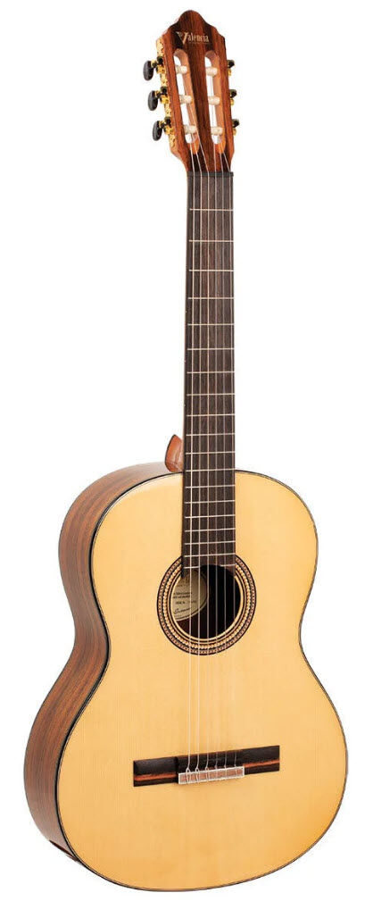The Valencia Series 560 stands out in its class with a high gloss Sitka Spruce top and fully bound Walnut back and sides; a gorgeous tonewood combination that enhances low frequency richness and sustain. Featuring a beautiful Amara Ebony fretboard, Mahogany neck and high quality gold tuning hardware these guitars are ready for many years of reliable performance.