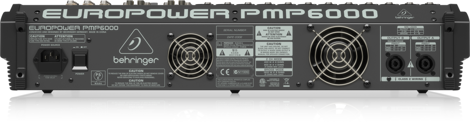 The amazing PMP6000 Powered Mixer packs tremendous power (2 x 800 Watts stereo or 1,600 Watts in Bridged mode), while maintaining an incredible power-to-weight ratio. These mixers employ high-efficiency Class-D technology and a state-of-the-art switch-mode power supply, which significantly reduces weight and heat. The 20-channel PMP6000 features 12 built-in, studio-grade XENYX mic preamps, 4 stereo channels, dual 24-bit Multi-FX processors with 100 awesome presets including studio-class reverbs, delays, pitch shifter and various multi-effects, plus a 7-band stereo graphic EQ with our proprietary FBQ Feedback Detection System – for the ultimate in feedback free performance.