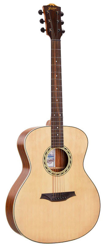 Introducing the Bromo BAA2 Appalachia Series – a grand auditorium acoustic that delivers versatility wrapped in timeless elegance. Crafted with a select spruce top and mahogany back and sides, this guitar produces a balanced, articulate voice perfect for fingerstyle or strumming. The premium mahogany neck with dual-action truss rod ensures long-term stability and playability, while the amara ebony fingerboard and 20 jumbo frets give you a smooth, responsive playing surface. Every detail counts: the Graph Tech NuBone XB nut and saddle maximize sustain and clarity, precision diecast machine heads keep your tuning locked in, and that gorgeous amara ebony cowboy rope rosette adds character to the soundhole. Finished in natural satin with striking black and white binding, this guitar proves that great tone and great looks go hand in hand.