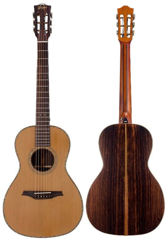 The Bromo Rocky Mountain Series delivers a fearless blend of craftsmanship and tone. Featuring a solid A-grade red cedar top paired with solid amara ebony back and sides, this parlour electric/acoustic guitar stands out with its patented ToneFlow bracing and striking abalone binding. Its premium mahogany neck, reinforced with ebony strips and a two-way truss rod, offers precision and durability. Equipped with a Fishman Sonitone system, bone nut, and compensated saddle, it ensures rich, amplified sound. Elegantly detailed with abalone inlays and finished with vintage brass machine heads, it comes ready with a rugged gig bag for fearless gigs anywhere.