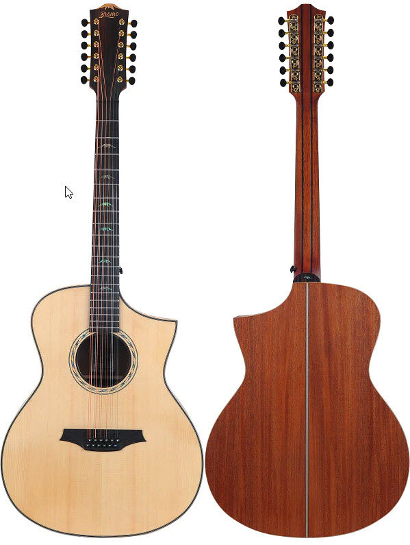 Unlock the shimmering, full-bodied richness of 12-string performance with the Bromo BAT4CE Tahoma Series, engineered for players seeking lush harmonic depth and stage-ready amplification. The solid spruce top combined with mahogany back and sides creates a naturally resonant foundation, enhanced by Bromo's patented Tone-Flow bracing for superior projection and clarity. Built for durability, the 5-piece head-through-heel mahogany neck features dual Amara ebony reinforcement strips and a 2-way truss rod, ensuring rock-solid stability under the demands of 12-string tension. The Florentine cutaway grants seamless access to upper frets, while premium appointments—including Amara ebony fingerboard with Mt. Bromo abalone inlays and deluxe gold-plated machine heads—reflect meticulous attention to detail. The dual pickup system combines a Fishman Sonitone with piezo under-saddle technology, delivering versatile amplified tones from warm and woody to bright and articulate. Finished in natural satin and supplied with a padded gig bag, this is the 12-string that commands respect both acoustically and plugged in.