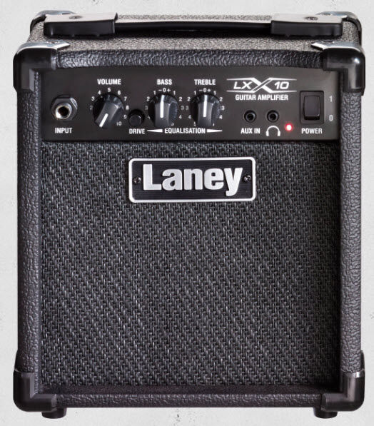 The LX10 is a compact, simple to use practice amplifier delivering great Laney tone for electric guitar. With a 5” driver and 10 watts RMS the LX10 is a mini tone monster. The LX10 allows you to find legendary Laney sound at a very modest price. Ideal for a beginner, the LX10 features a simple-to-use pre-amplifier with volume control and 2-band EQ. A Drive switch quickly adds overdrive. The mini-jack AUX input allows for connection of a playback device such as MP3/iPod/CD for jamming along to songs or backing tracks, plus there is a headphone socket – a great feature for private practice or silent late-night sessions. Available in Black