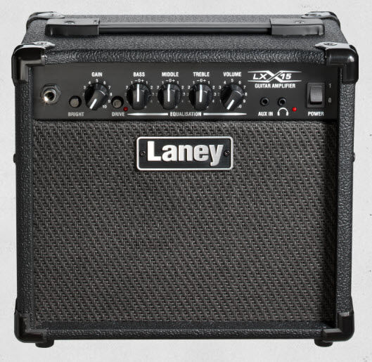 The LX15 is a compact, simple to use practice amplifier delivering great Laney tone for electric guitar. With 15 watts RMS power and twin 5” speakers, the LX15 delivers huge Laney sound and features a classic ‘master volume’ style preamp allowing gain and master level to be balanced independently. With a 3-band EQ tone stack plus a Drive switch to add distortion, an assortment of great tones can be dialled in from spanky clean to overdrive sounds with real punch. The mini-jack AUX input allows for connection of a playback device such as MP3/iPod/CD for jamming along to songs or backing tracks, plus there is a headphone socket – a great feature for private practice or silent late-night sessions. Available in Black