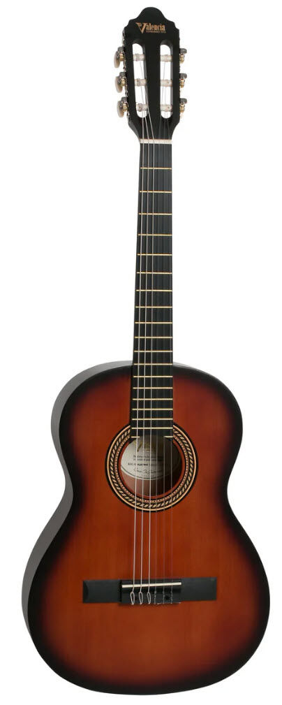 ebonized mahogany fingerboard and bridge. Traditional nickel machine heads with creambuttons. Supplied with Valencia UPlay Guitar Guide and free online lessons
